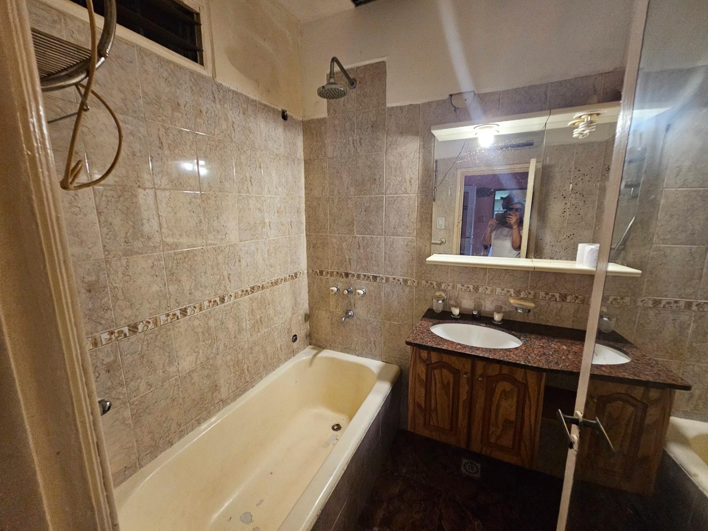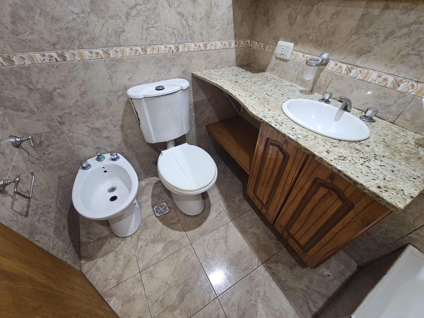 -Baño completo con cerámicos, sanitarios y bañera con ducha.
