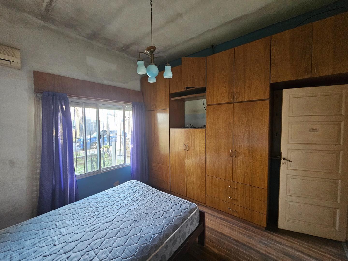 -1 dormitorio con amplio placards empotrado, con ventana al frente, rejas de seguridad y pisos de parquet.